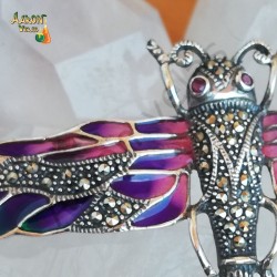 Broche en forma de libelula de plata de ley, esmaltes y hematites